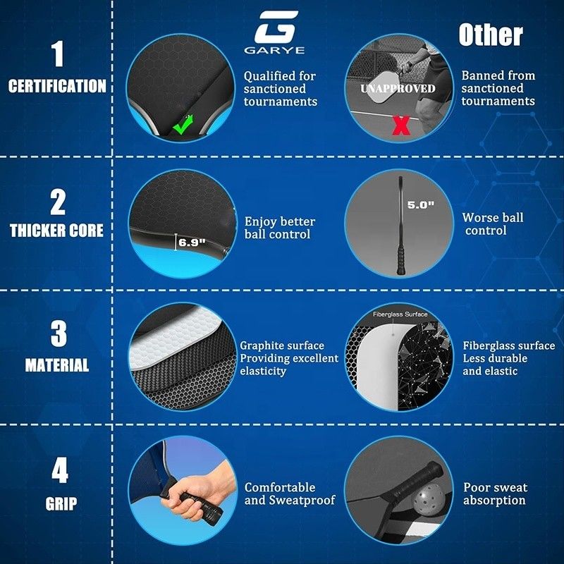 | Nome: | Raquetes de bola de picles de forma retangular | Materiais: | fibras de carbono | Grupo etário: | Adultos | Utilização: | Treinamento, corridas, diversão | Duração (cm): | 40 | Peso (G): | 225+/-5 | Logotipo: | Logotipo personalizado disponível | MOQ: | 1pcs | Certificado: | Cumprir o padrão USAPA | Tamanho: | L: 15,67 polegadas* largura:7.8 polegadas | Espessura: | 0.69 polegadas / 16 mm | Tamanho da pá: | XL | Forma da remo: | Rectangular |