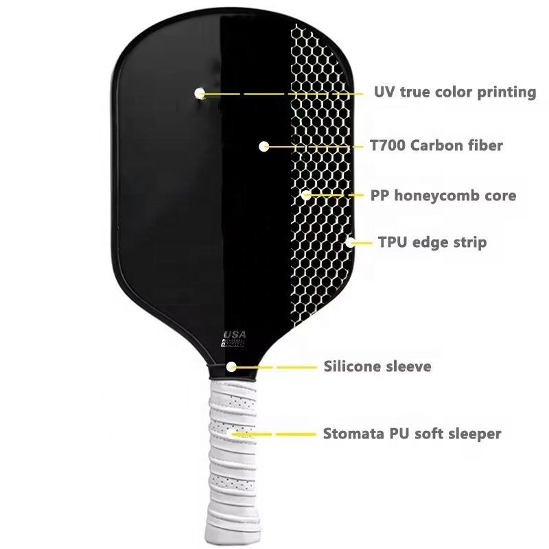 Outdoor PP Honeycomb Core Custom T700 Frosted Pickleball Paddle para aprovação da USAPA